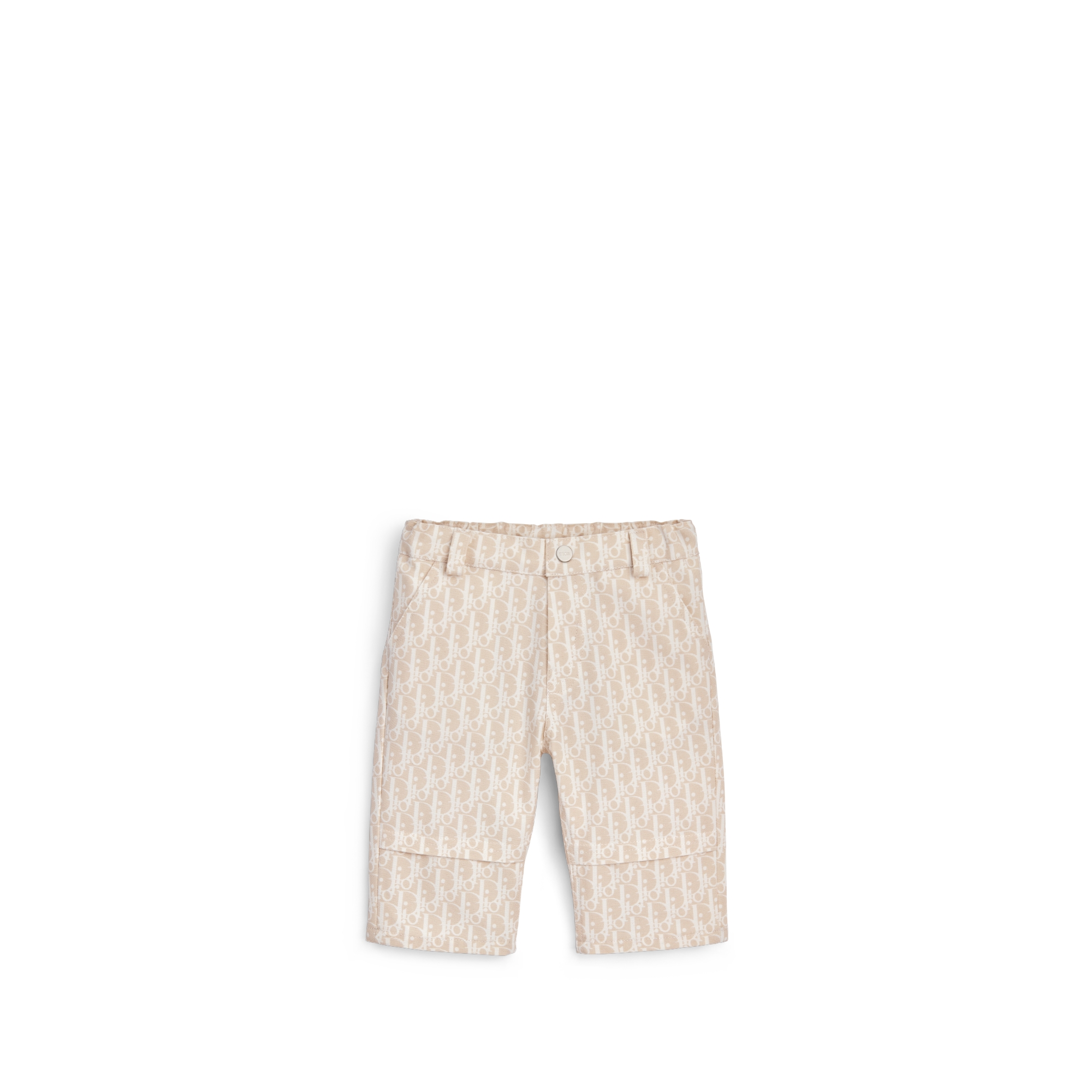 The pants pay homage to House heritage through the emblematic Dior Oblique motif. Crafted in beige basket weave cotton with an ivory allover print, they feature slanted pockets, two patch pockets and elastic in the back of the waistband. Fastening with a metal snap, the pants can be paired with the matching jacket from the collection to complete a signature look. Belt loops. Zip closure with Dior-engraved metal snap on the front. Elastic waistband at the back. Cutout details at the bottom. Slanted pockets. Two rear patch pockets. Composition: 100% cotton. Unlined