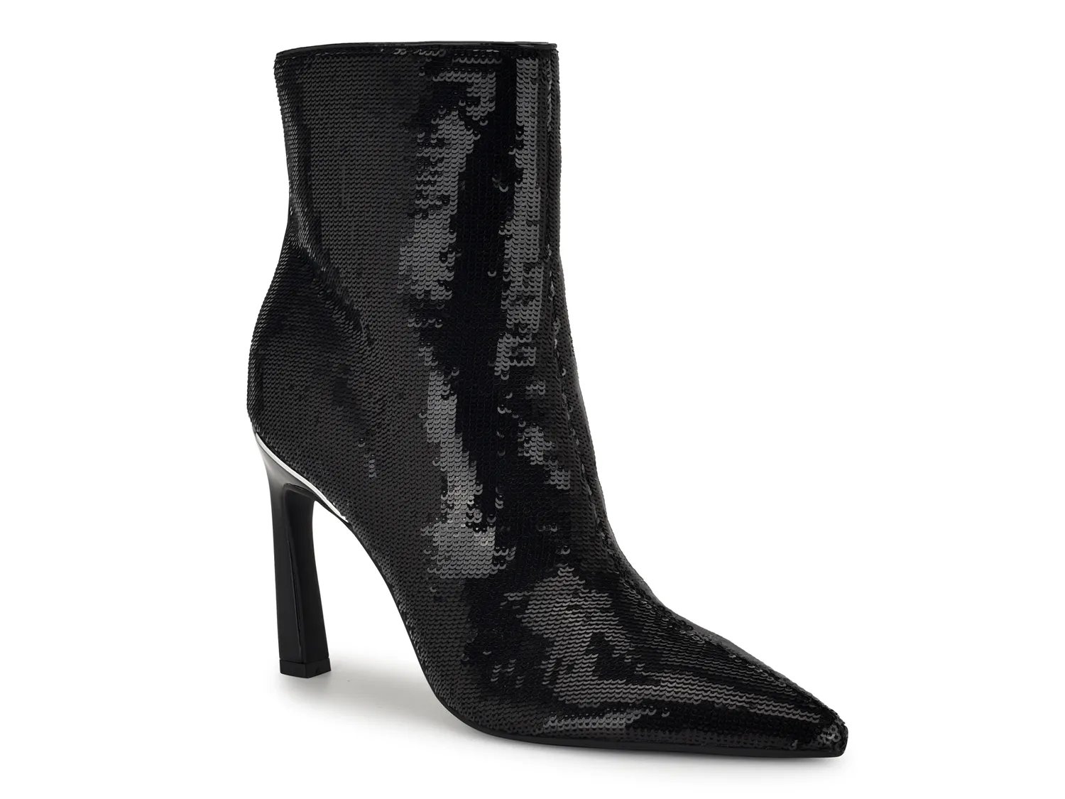 Get that fun, flashy look by donning the Balize bootie from Calvin Klein. Sparkly sequin accentuation brings all gazes towards this pointy toe bootie, elegantly lifted by a high tapered heel.