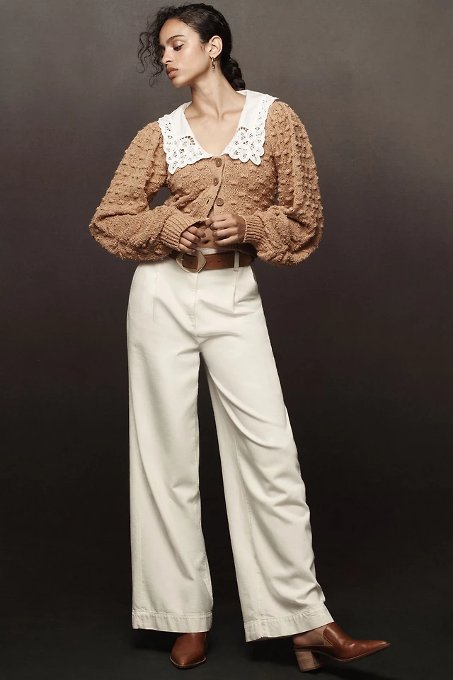 Balloon-Sleeve Collared Cardigan Sweater