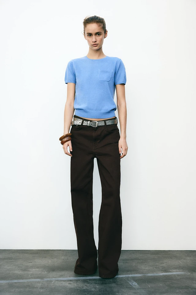 TRIMMED SHORT SLEEVE KNIT TOP