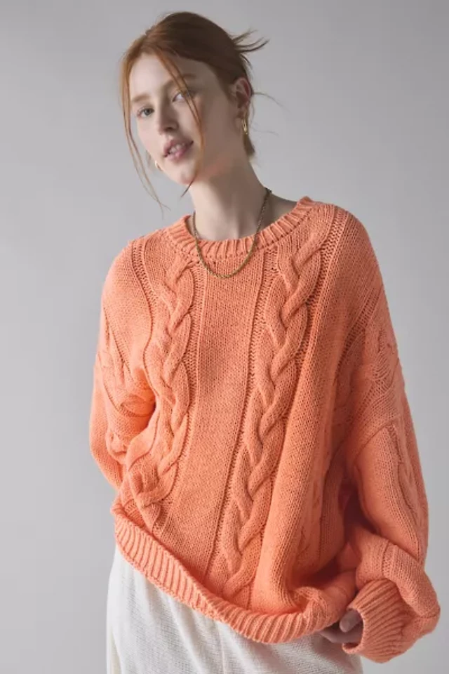 BDG Skylar Oversized Crew Neck Cable Knit Sweater