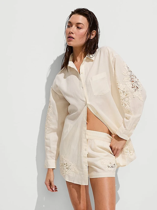 Beachwear Linen Lace-Trim Shirt