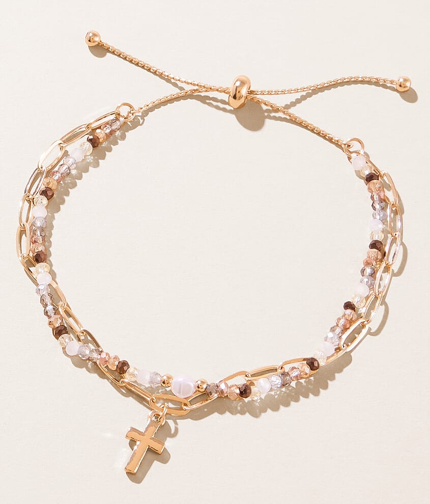 Cross pendant slider bracelet Measures up to 3" in diameter