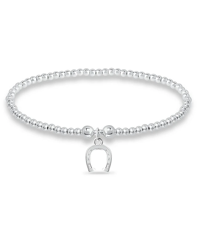 Bead Horse Shoe Charm Bracelet in Silver Plate