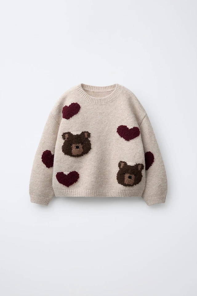 BEAR AND HEART KNIT SWEATER