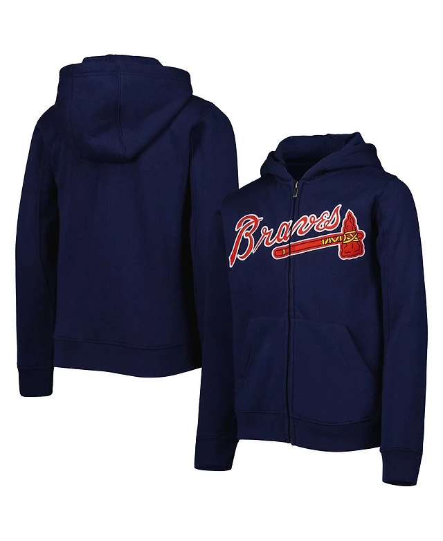 Big Boys and Girls Navy Atlanta Braves Wordmark Full-Zip Fleece Hoodie