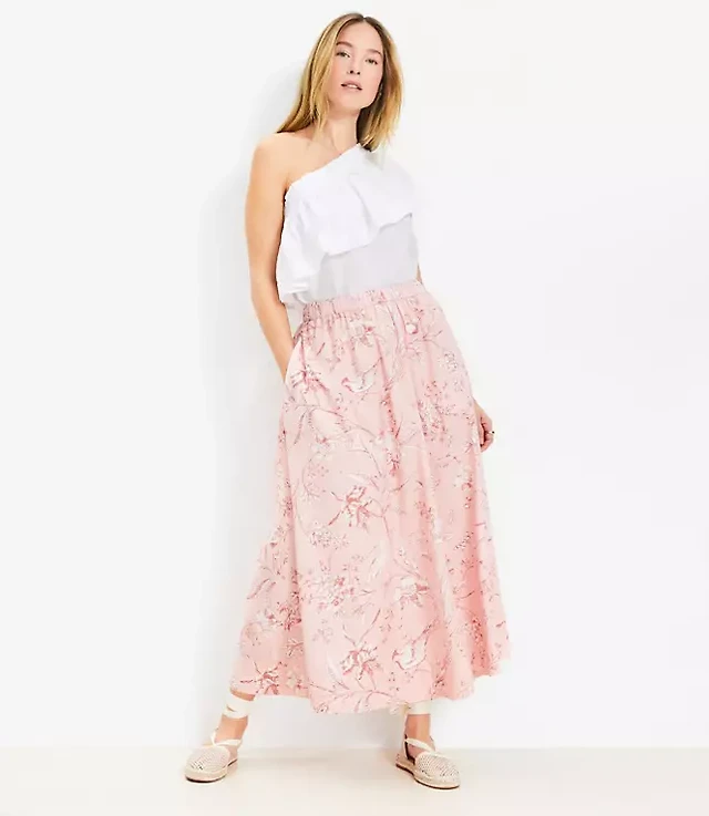 LOFT Beach Paisley Linen Blend Tiered Maxi Pocket Skirt