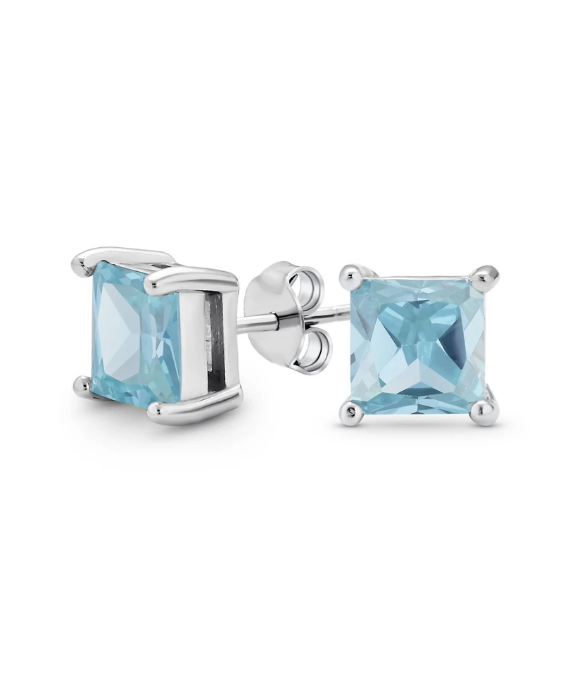 Bling Jewelry 2CT Square Cubic Zirconia Cz Stud Earrings Sterling Silver 7MM