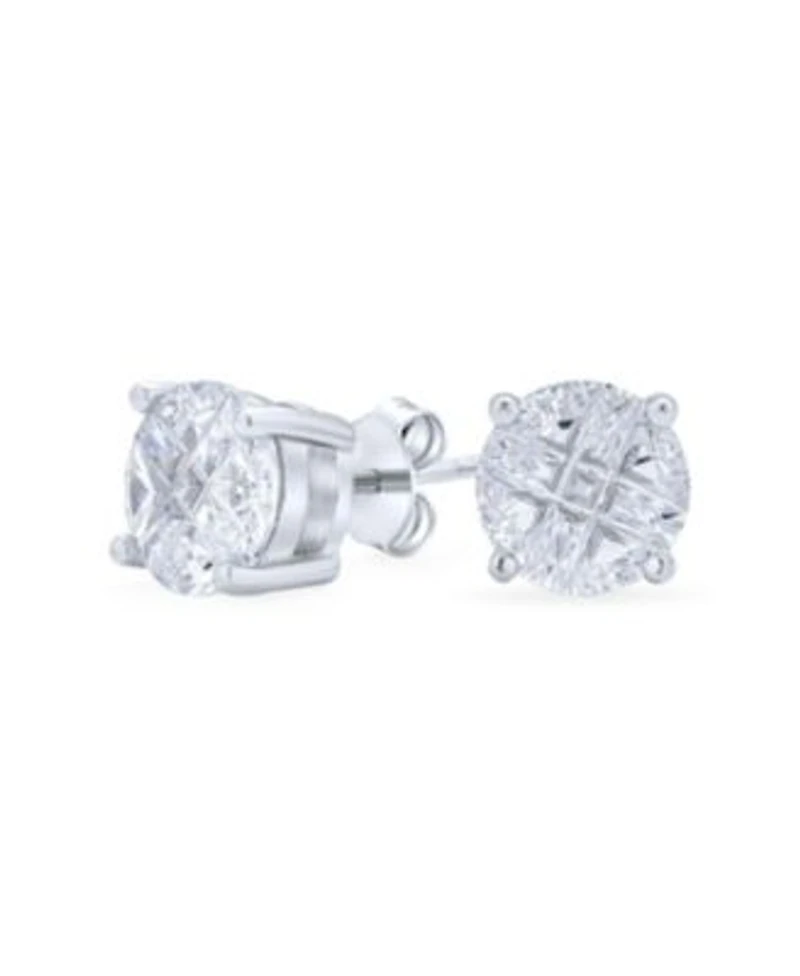 Bling Jewelry 3ct Round Solitaire Cut Cubic Zirconia Invisible Cut Stud Earrings Sterling Silver