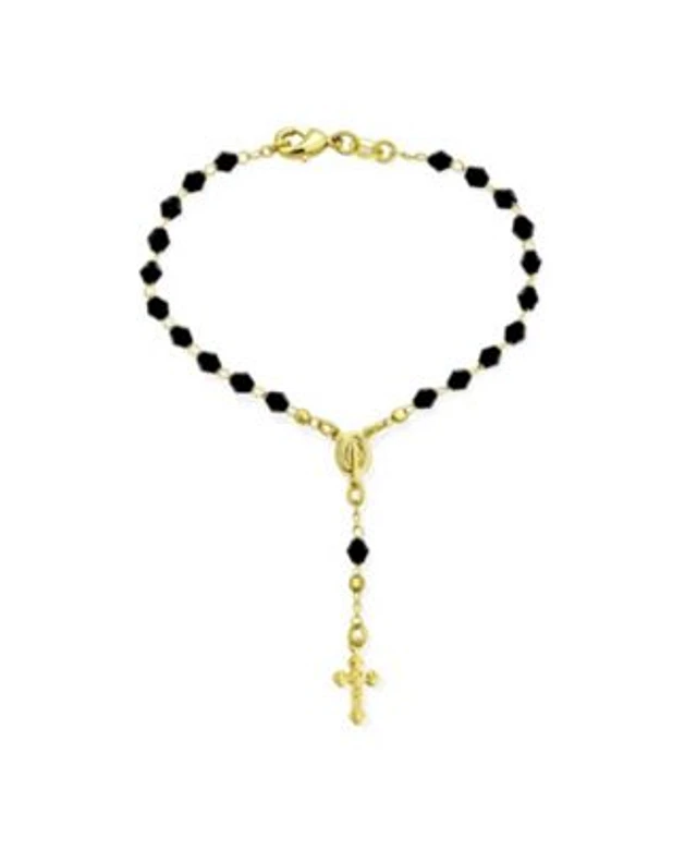 Bling Jewelry Christian Rosary-Bead Bracelet Black Beads Virgin Mary Crucifix 18K Gold 7-7.5 Inch