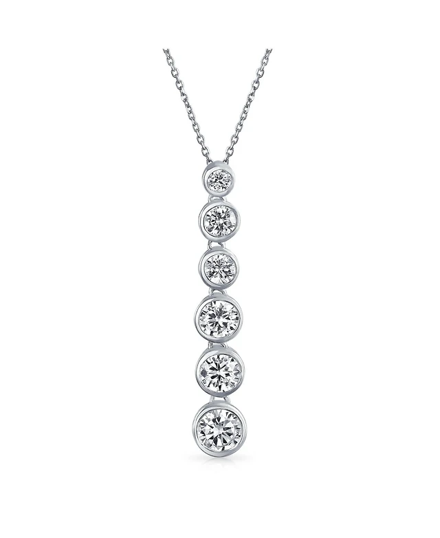 Bling Jewelry Elegant Sterling Silver Cz Linear Drop Graduated Geometric Bubble Pendant Prom Bezel Set Round Cubic Zirconia.