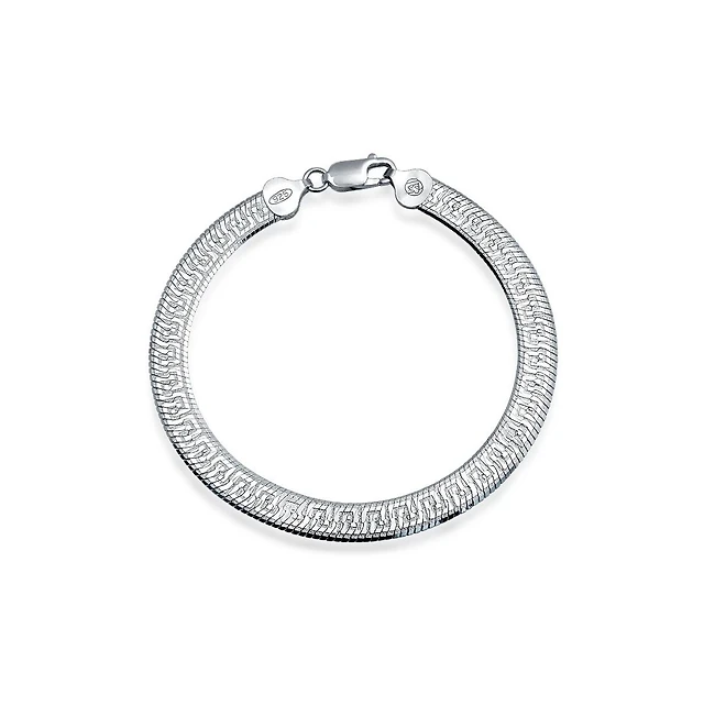 Bling Jewelry Herringbone Reversible Flat Greek Key Flexible Strong Chain Bracelet Sterling Silver