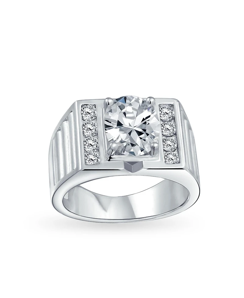 Handome Design - Delight the favorite man in your life with this stunningly distinguished, promise ring. Accented by a lustrous masculine design with oval cz center stone enhanced by channel set cz's and eye-catching matte ridges.