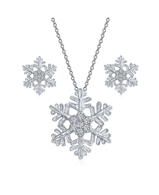 Bling Jewelry Holiday Party Snowflake Pendant Necklace & Earrings Set Blue Cz Sterling Silver