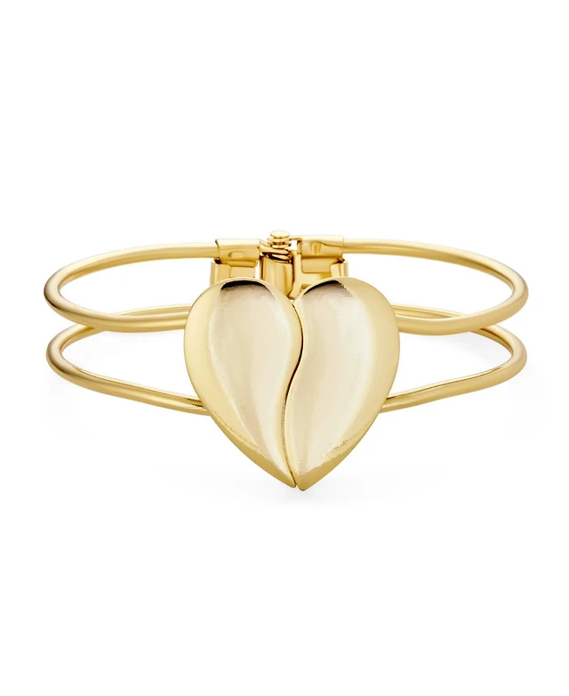Bling Jewelry Initials Friendship Love Split Heart Wide Bracelets Bangle Cuff Bracelet ForYellow Gold Tone Metal Hinge Opening