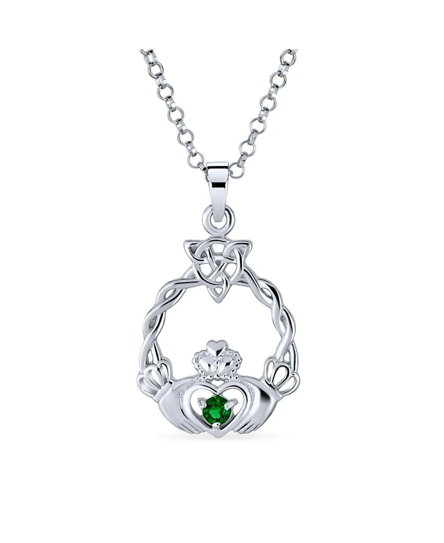 Bling Jewelry Irish Kelly Green Cubic Zirconia Cz Celtic Infinity Love Knot Friendship Heart Claddagh Pendant Necklace Sterling Silver