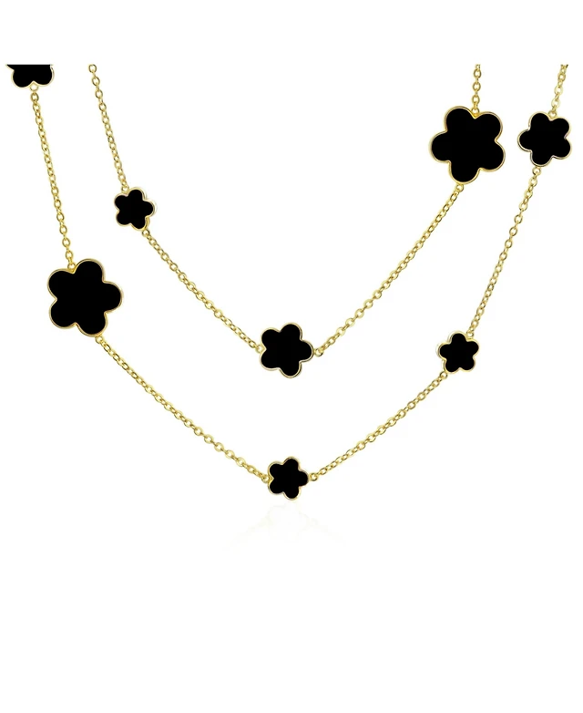 Bling Jewelry Large & Small Enamel Flower Station Chain Wrap Layer Clover Necklace Rose Gold Plated