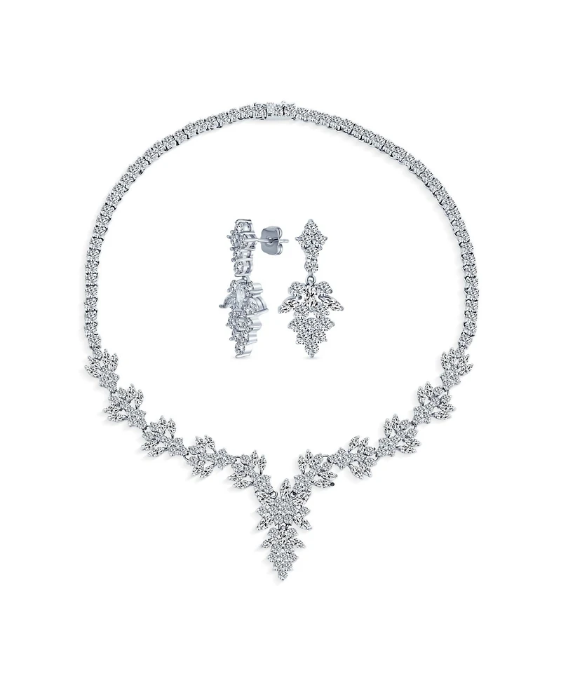Bling Jewelry Marquise Leaf Cubic Zirconia Cz Cleavage Collar Statement Necklace & Earrings Jewelry Set
