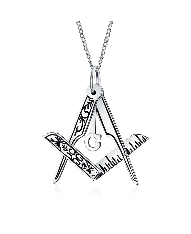 Bling Jewelry Masonic Freemason Compass Pendant Necklace in Oxidized Sterling Silver Chain