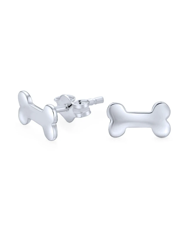 Bling Jewelry Minimalist Dog Bone Stud Earrings Animal Lovers in Sterling Silver