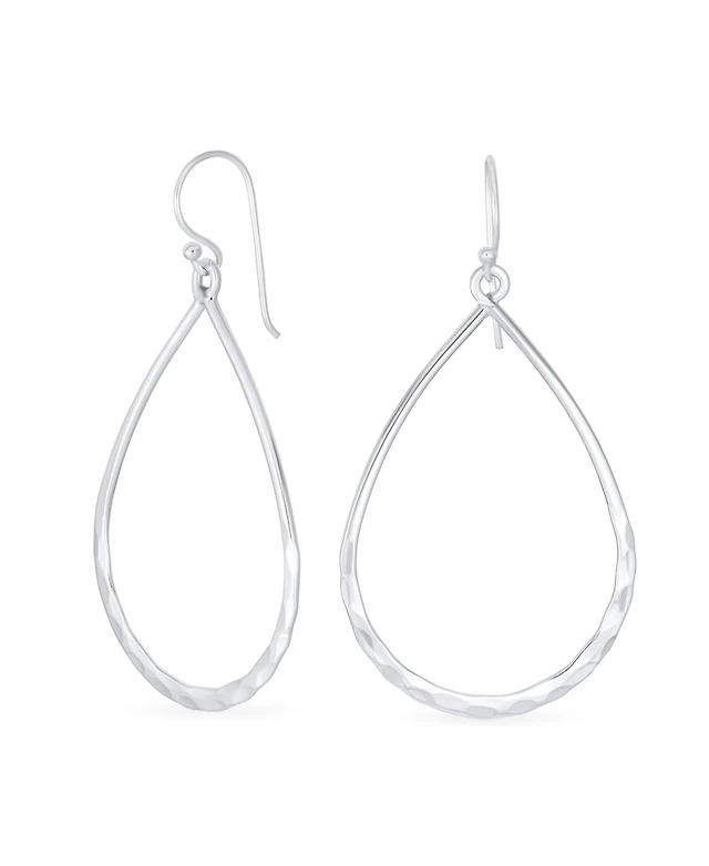 Bling Jewelry Pear Shaped Lightweight Hoop Huggie Earrings Sterling Silver 2 Inch