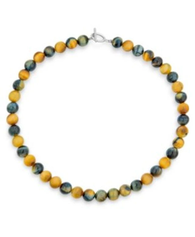 Bling Jewelry Plain Simple Mixed Grey Blackish Alternating Brown Tiger eye Round 10MM Bead Strand Necklace Silver Plated Clasp