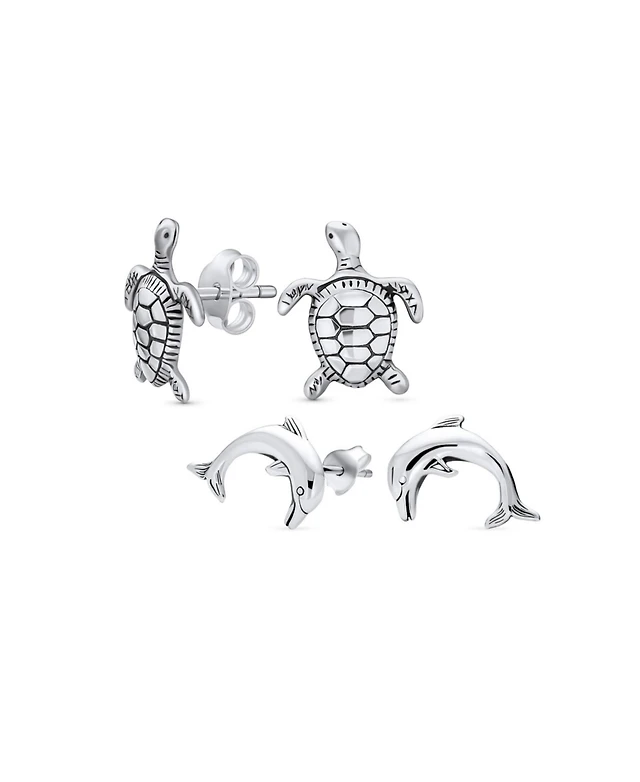 Bling Jewelry Set of 2 Hawaiian Sea Tortoise & Dolphin Stud Earrings in Sterling Silver
