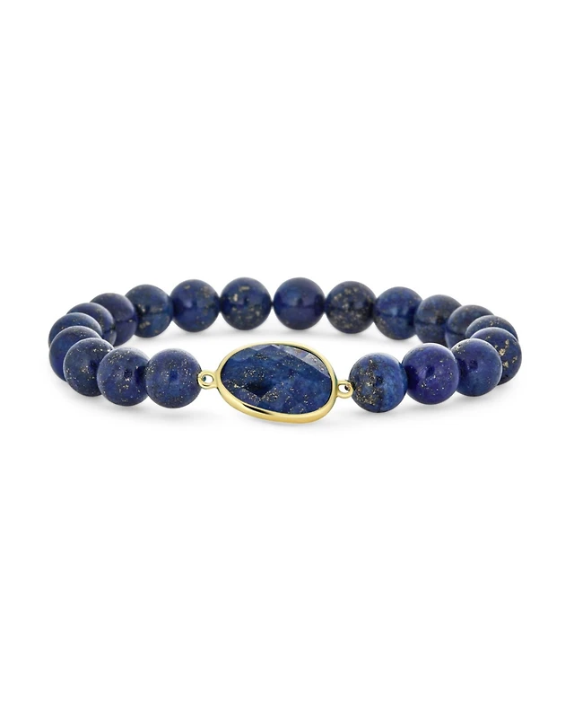 Bling Jewelry Stackable Navy Blue Lapis Lazuli Stretch Bracelet with Nautical Anchor Design