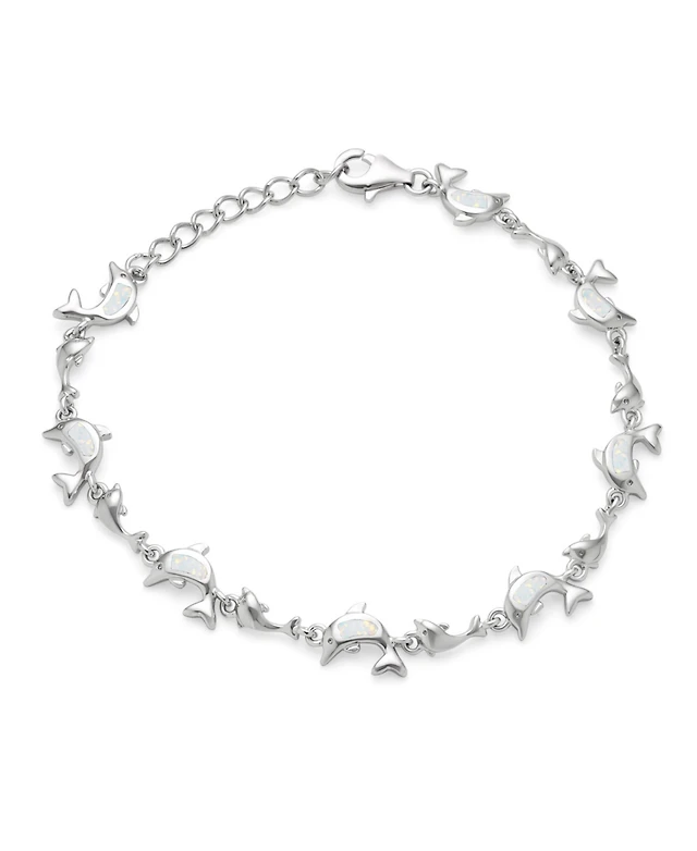Bling Jewelry Sterling Silver Dolphin Charm Bracelet with Synthetic Blue Opal Inlay