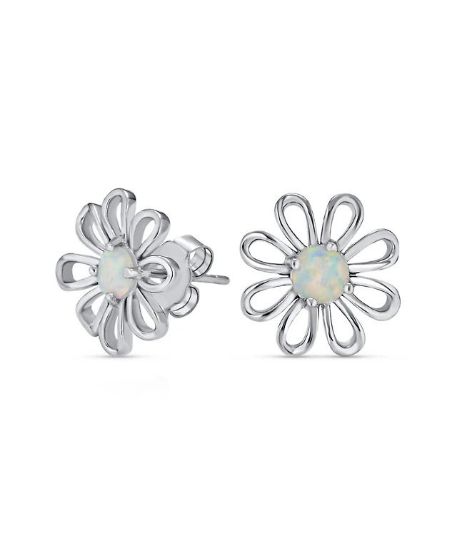 Bling Jewelry Synthetic White Opal Daisy Flower Stud Earrings Sterling Silver Jewelry