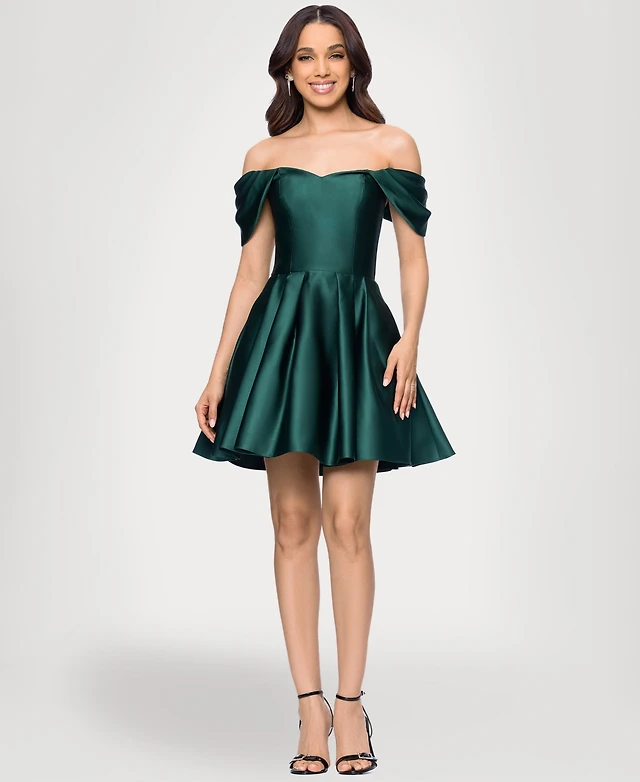 Blondie Nites Juniors' Off-The-Shoulder Center-Back Zipper Dress