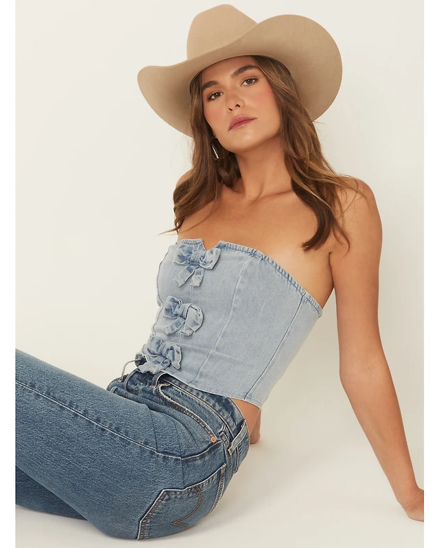 Blue B Women's Bow Tie Denim Bustier