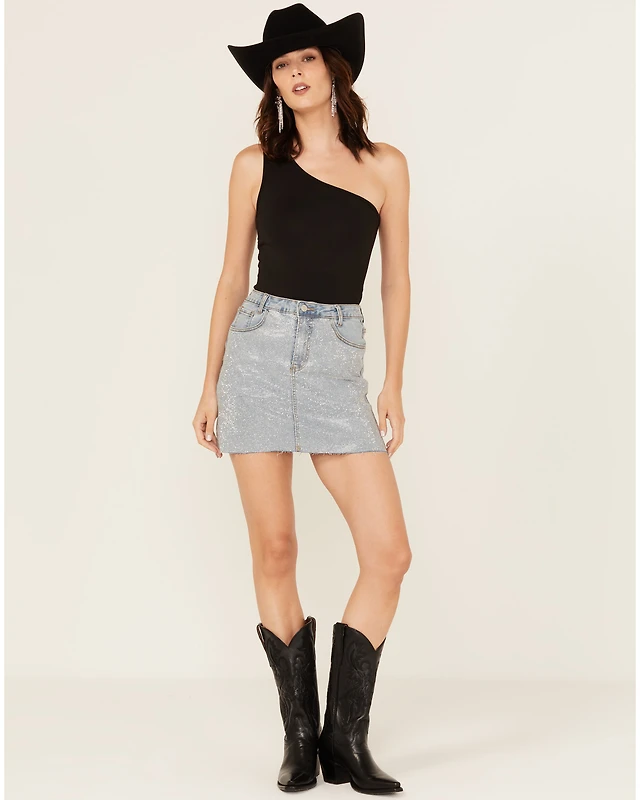 Blue B Women's Light Wash Embellished Mini Denim Skirt