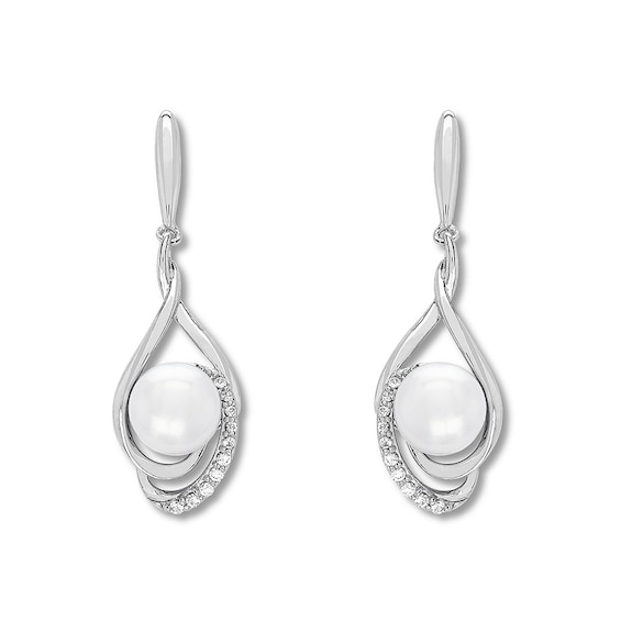 Cultured Pearl & White Lab-Created Sapphire Earrings Sterling Silver