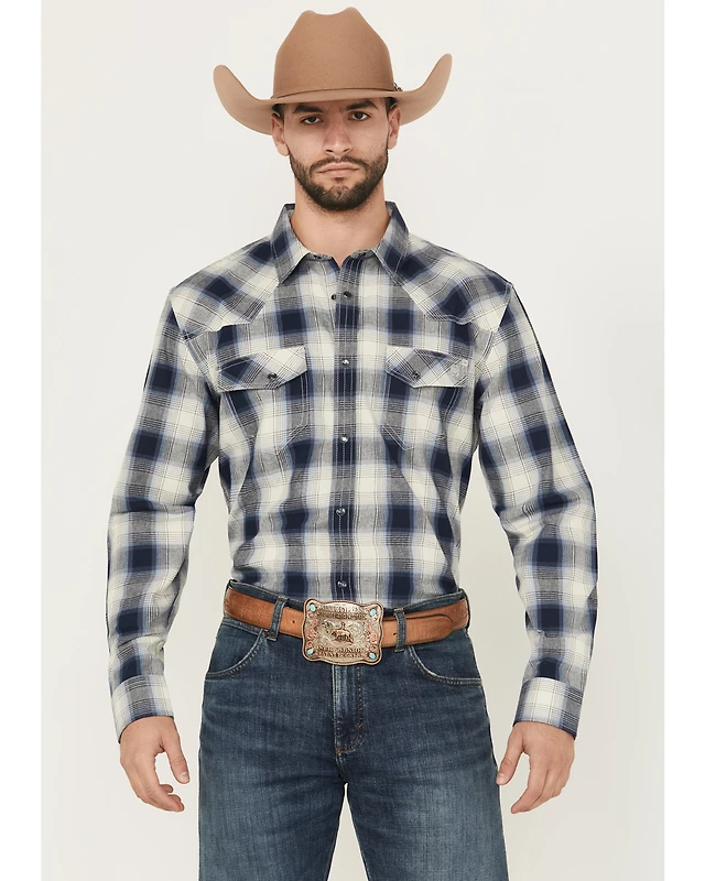 Blue Ranchwear Men's Lander Plaid Print Long Sleeve Western Snap Shirt