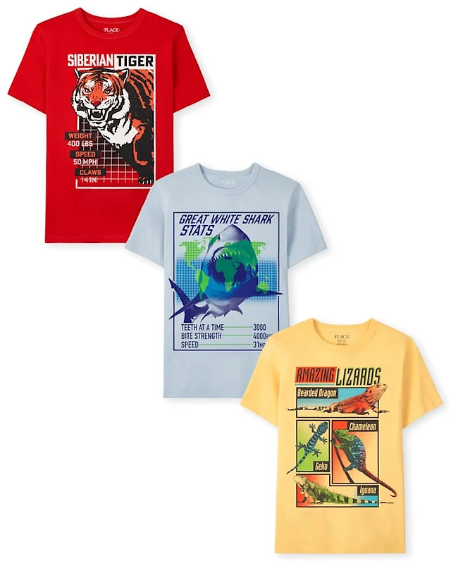 Baby And Toddler Boys Animal Graphic Tee 3-Pack