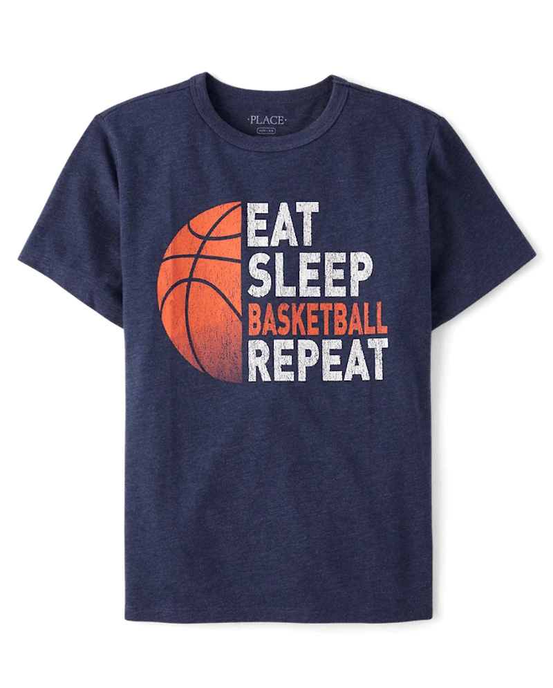 • FEATURES: 'Eat Sleep Basketball Repeat' with basketball graphic design, tagless label