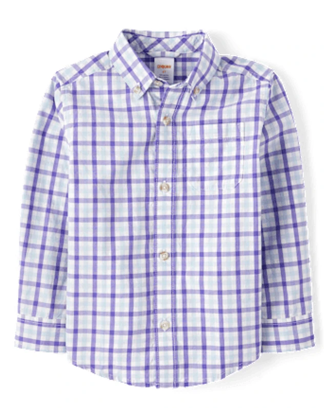 Boys Plaid Poplin Button Up Shirt