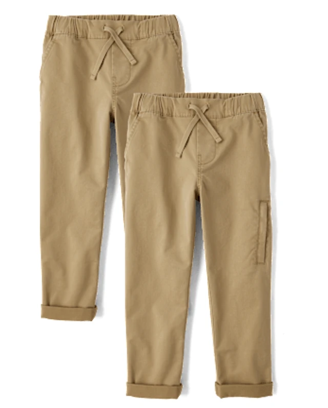 Boys Stretch Roll Cuff Pull On Chino Pants 2-Pack