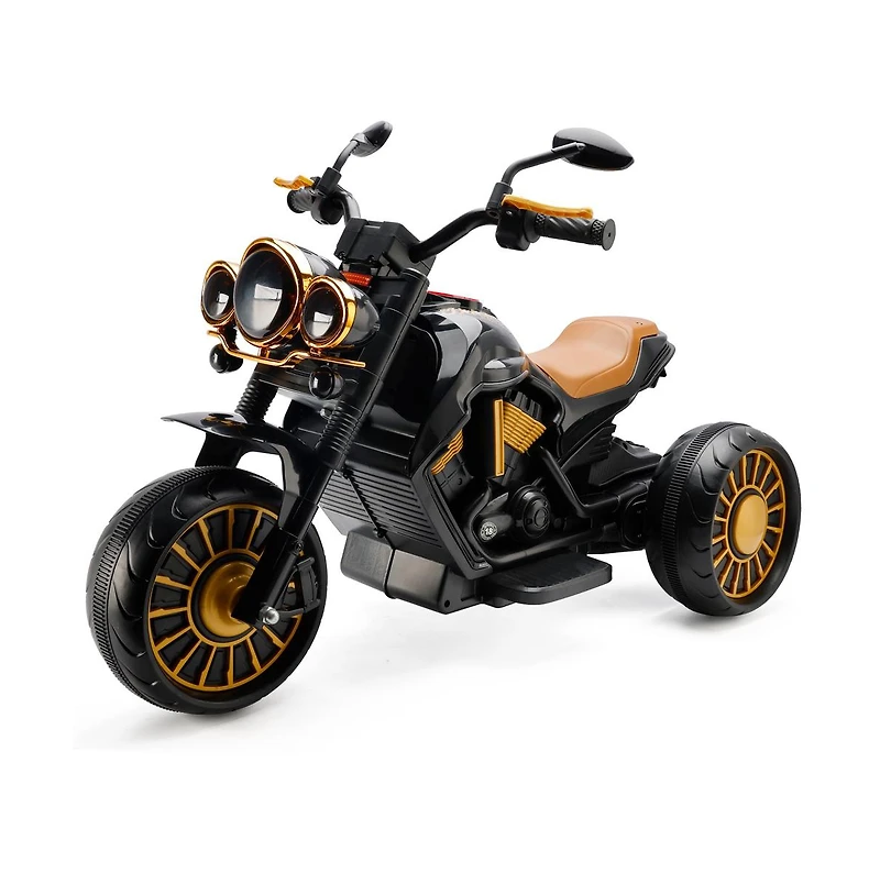 This three-wheeled electric motorcycle for children features a plastic and metal composite frame and is designed specifically for children aged 3-8. Equipped with dual drive motors and a dedicated charger, it boasts a striking Led headlight, a realistic dashboard, and a start-up sound effect, creating an immersive riding experience. Its triangular stabilizing structure and widened, enlarged tires effectively enhance grip and prevent tipping, ensuring smooth riding on various surfaces such as brick, asphalt, and wooden floors. The enlarged electric pedals allow for easy start-up, and the streamlined seat conforms to a child's body shape. Combining safety and entertainment, this vehicle is an ideal ride for children's outdoor and indoor activities.