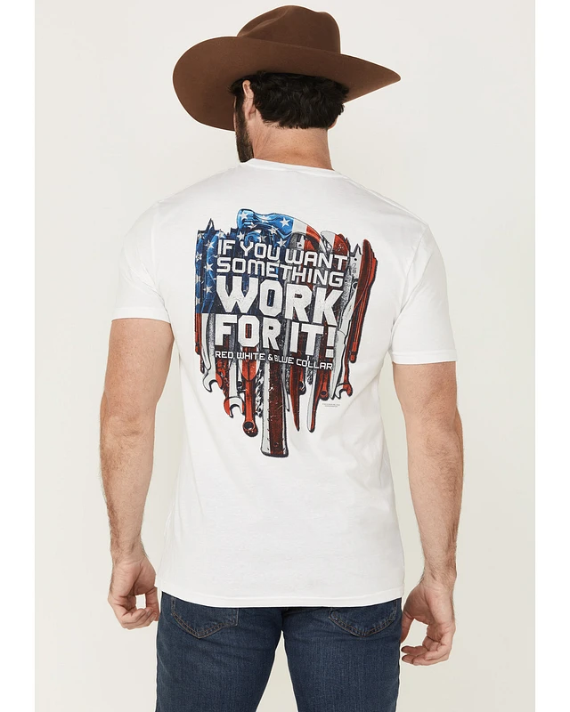 Buckwear Men's Red, White & Blue Collar Short Sleeve Graphic T-Shirt
