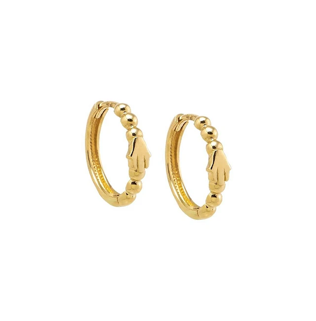 By Adina Eden Solid Beaded Hamsa Huggie Earring 14K