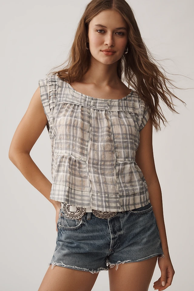 By Anthropologie Short-Sleeve Seamed Swing Top