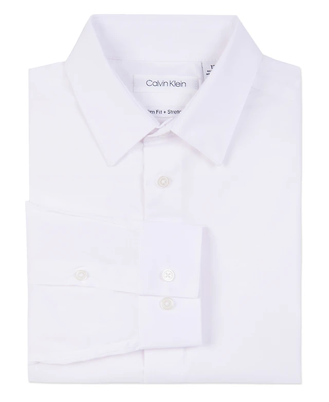 Calvin Klein Big Boys Husky Solid Stretch Poplin Shirt