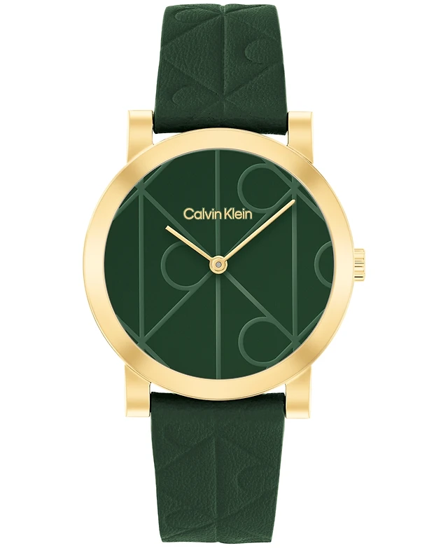 Calvin Klein Women's Ck Monogram Green Leather Strap Watch 32mm