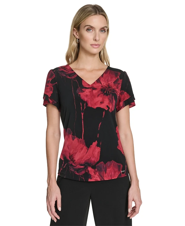 Calvin Klein Women's Short Sleeve V-Neck Printed Top