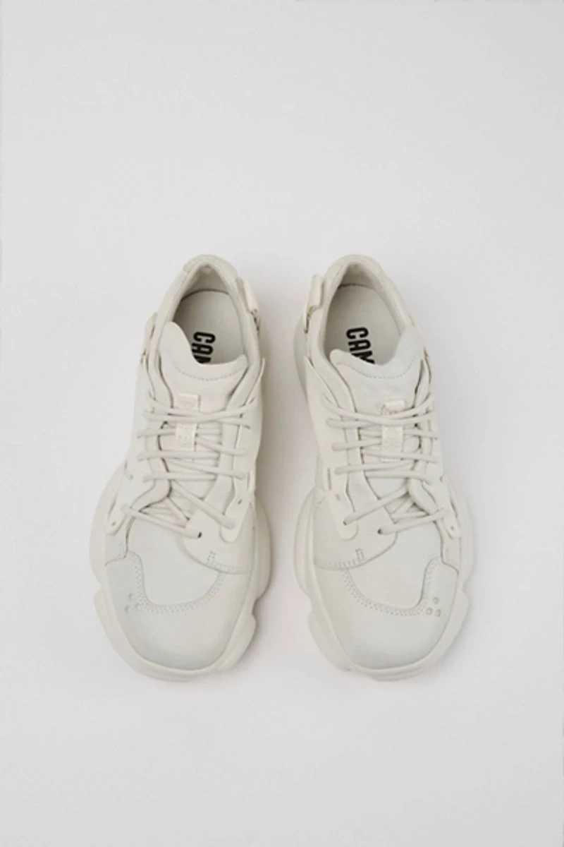 White non-dyed leather women's sneakers with OrthoLite® Recycled™ footbeds and XL EXTRALIGHT® Organix™ outsoles (30% bio-based sugarcane). Karst is a unisex sneaker with an organic, technical look inspired by nature and the outdoor world. This sneaker features a thick rounded, protective outsole and an ergonomic shape.