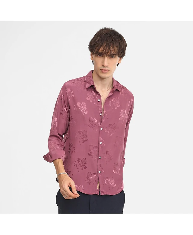 Campus Sutra Men's Rouge Pink Self-Design Floral Shirt