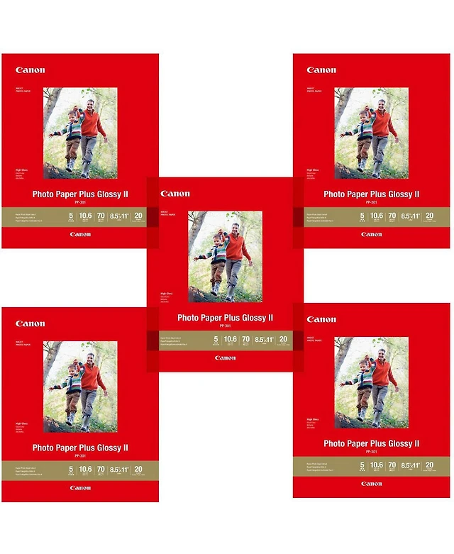 Canon 5 Pack Pp-301 Photo Paper Plus Glossy Ii Inkjet Paper, 10.6 mil, 265 gsm, 8.5x11", 20 Sheet Pack