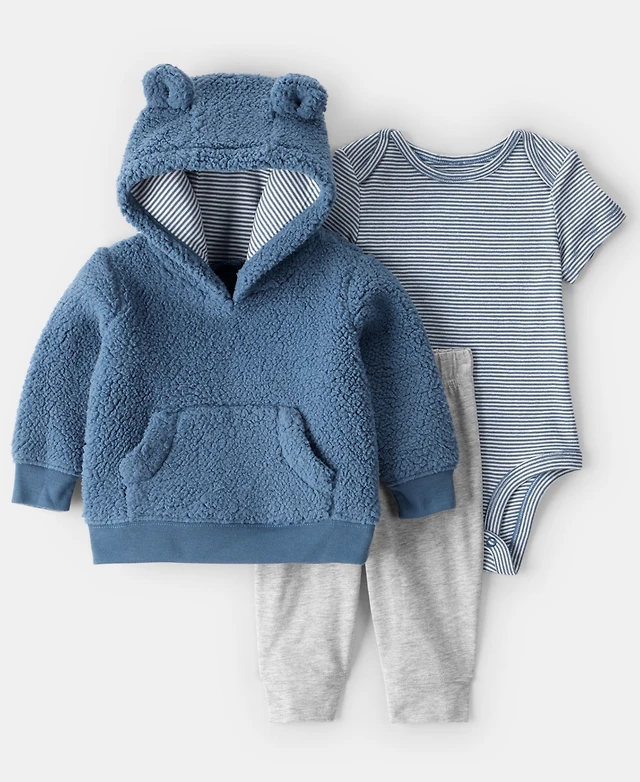 Carter's Baby Boys 3-Piece Bear Long-Sleeve Hoodie, Bodysuit and Joggers Set